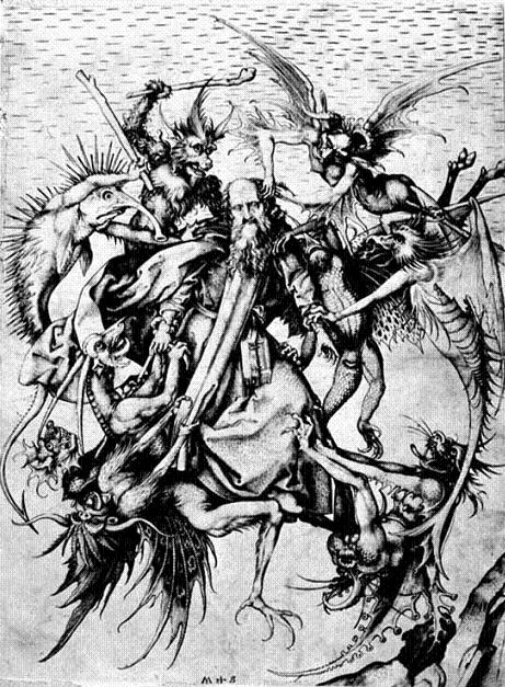 And with good reason. Talk about an opus contra nataram. I’m amazed at how vulnerable I am on the days I give presentations. Kate reminded me of how tongue tied I got at the very start and I thought – ohmigod. She’s right. I was terrible. I must be stupid. Why don’t I have this down yet? They’ll never want me back. This just goes to prove...all manner of unrelated negative things I’ve suspect all along. So, I went to sleep with bad juju floating all around me. Got up the next morning and it had lifted. I’ve learned in the Jungian seminar about things called complexes, accretions of feelings and ideas and memories clustered around a constellating or precipitating core. I’d heard the word before, but somehow it never developed a concrete reality for me until now. In the morning I realized I had wandered into a complex, probably one constellated around my imaginal image of my father’s image of me: a bumbler with, ultimately, no real skills, and bound to fail. Not a guy who could get involved in anything serious and succeed because eventually he’d be found out, exposed. Over time I managed to energize this complex whenever I experienced a perceived slip: angry words to someone or from someone, a B for god’s sake, losing the power of speech during a sermon, any, in other words, of the uncounted and uncountable, normal dips in a life. Pilgrimage accounts for this phenomena and gives us a tool for life. On the road it is common to despair, to lose hope, to believe the obstacles too hard, the troubles out of control. And the way to meet them is to ask whether the troubles or the journey has more power, more significance, more value. In the backwaters of Oaxaca the taxi-driver who has decided a demon chases his vehicle and he, personally, can escape if only he drives fast enough, is an obstacle. A tip for slowing down can bring him back to the awareness that completion of the trip assures the demon will lose; you will live to fight it in good health. 95% of Americans fear public speaking more than death. Strange, as they say, but true. I’ve been a public speaker almost all my life and have only very occasionally succumbed to this fear. It happens for me when something tiny goes wrong. Sunday AM I read some words in an eytmology I’d cut and pasted. And the words made no sense. So, I tried to think, while talking, how I should adjust. Turns out I couldn’t do both at the same time. So what? I couldn’t. Sure enough, this morning I had an e-mail asking me for a copy of the sermon and for dates of availability in the next church year. So, there. Complex. Complexes are, in fact, the demons which pursue us; and, their reality and power is not analgous to demons, but the same. When they come and attack us, their power to destroy us is strong, depending on the complex, and it can be complete. Our pilgrim journey is, in part, to expose our demons along the way, learn their ways, and, if we can, exorcise them; if we can’t, then learn how to dampen and dimish their corrosive power. St. Anthony was a great demon fighter and I close this piece with an image of him at work: